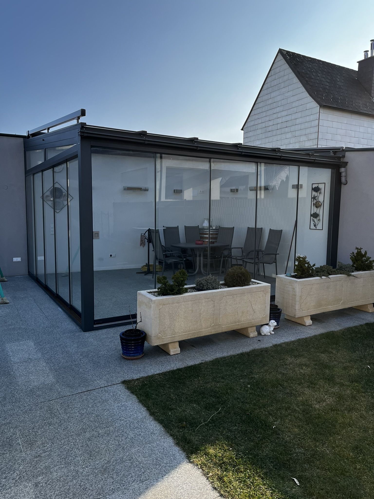 - Ganzjährige Nutzung: Schutz vor Regen, Schnee, Wind und Kälte – dadurch ist die Terrasse Sommer wie Winter komfortabel nutzbar